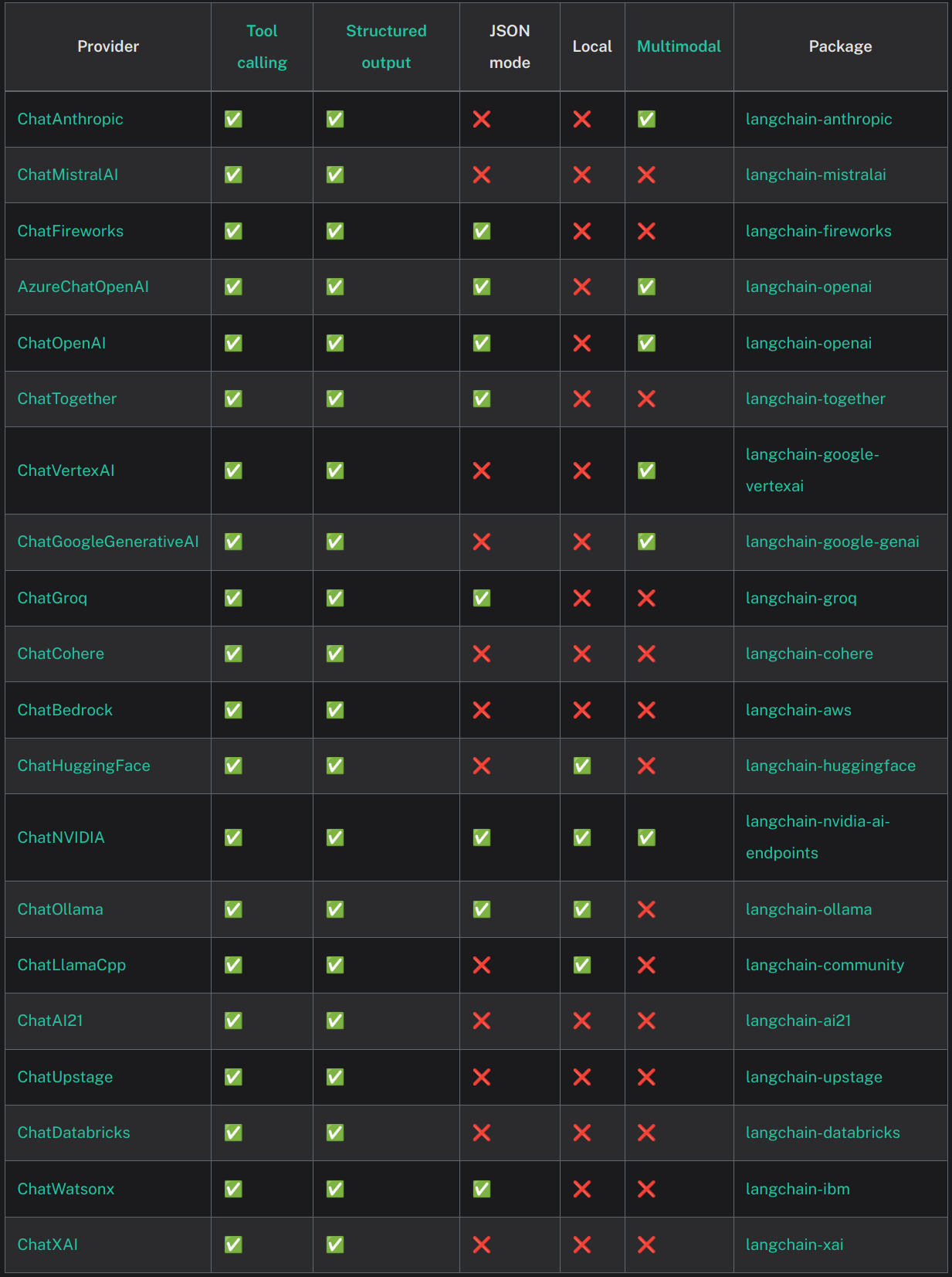 원래는 OpenAI의 api를 발급받아서 실습을 진행해야 하는데, 나는 따로 결제를 하지 않기 위해서 Ollama를 이용하여 실습을 진행하였다. 다행히도 실습에서 사용되는 `langchain_openai`의 `ChatOpenAI`와 유사하게 `langchain_ollama`의 `ChatOllama`가 있었다. 아래에 다른 여러 패키지들도 있으니 꼭 OpenAI api를 사용하지 않고 다양하게 해 볼 수 있을 것 같다.(다만 지원되지 않는 것들이 있으니 참고)