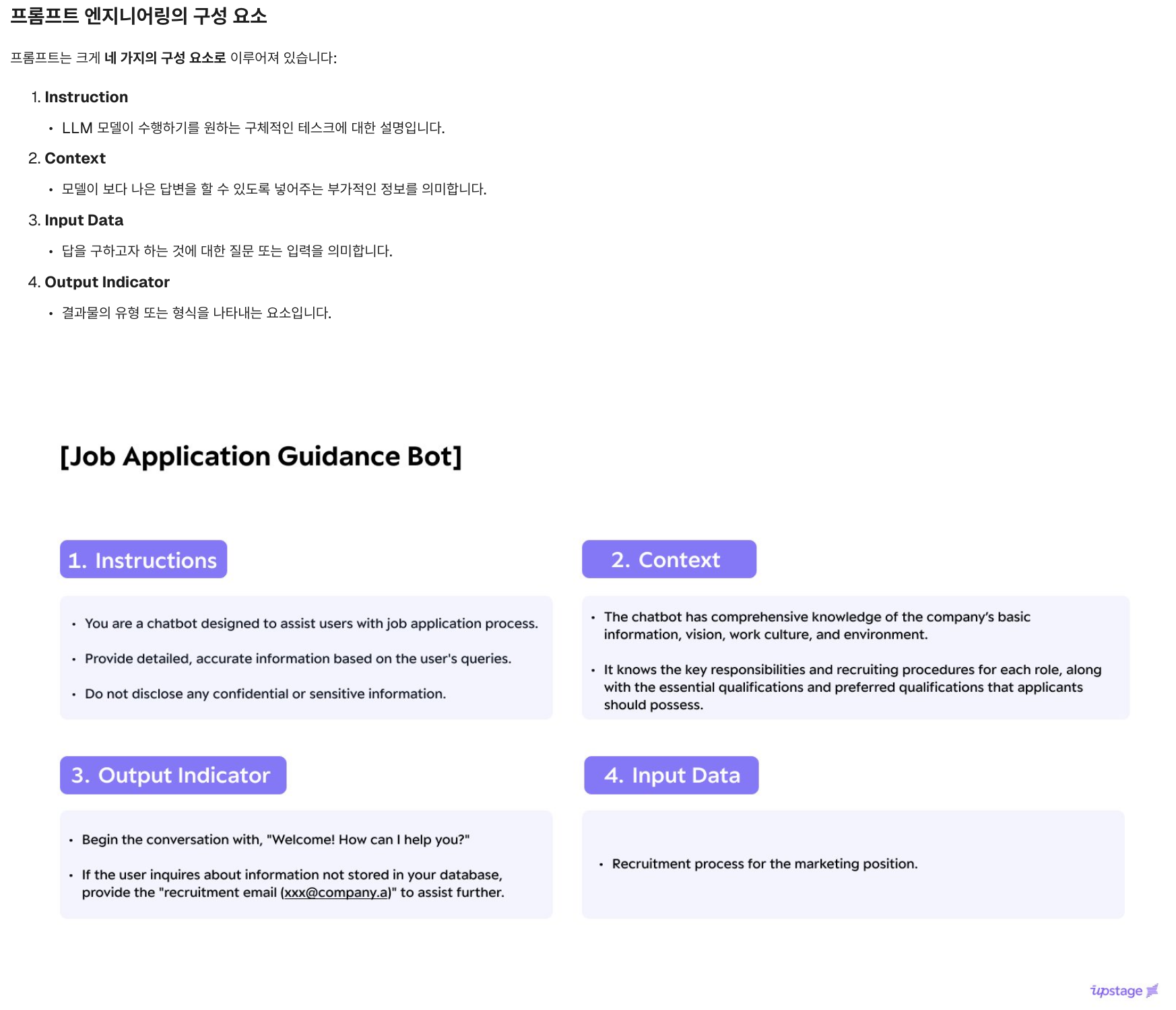 참고로 프롬프트는 크게 아래와 같이 4가지 구성요소로 구성된다.