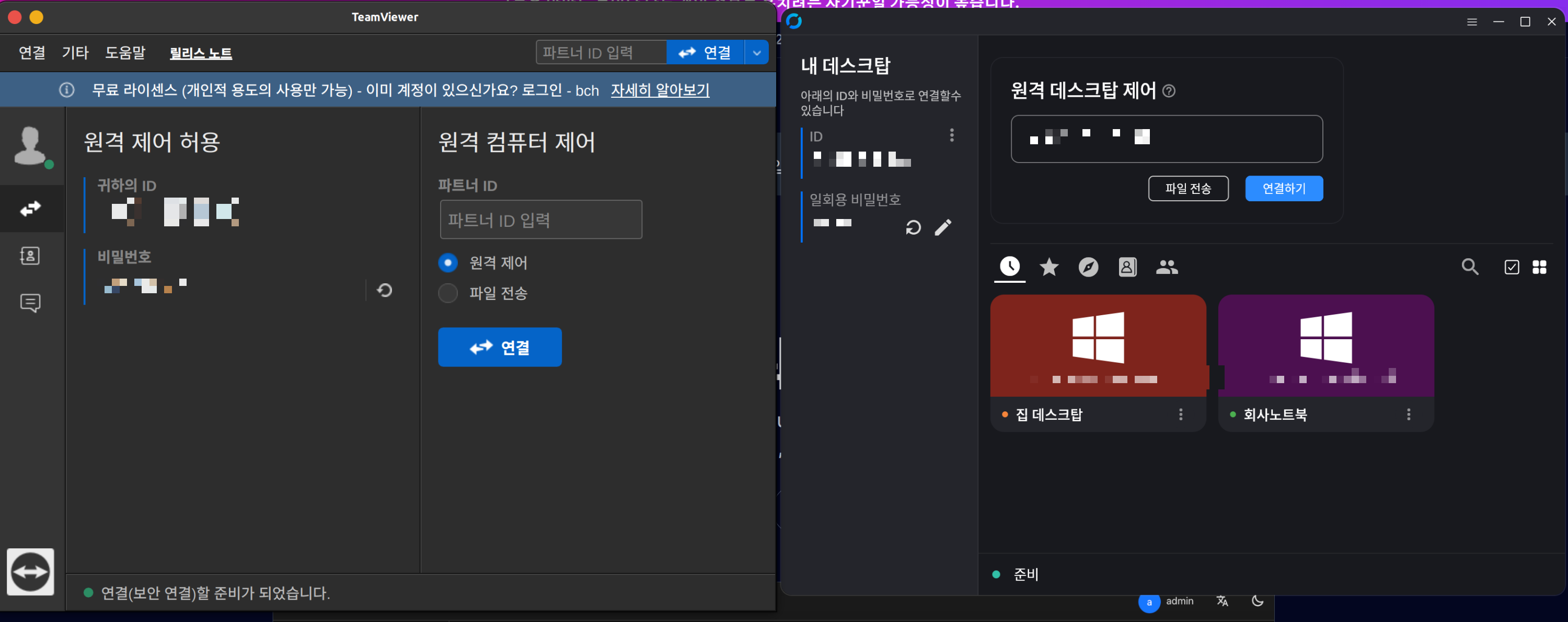 사실 다운로드하여보면 알겠지만, TeamViewer과 UI도 거의 동일하고, 직관적이어서 사용법을 설명할 것도 없다. (좌측이 팀뷰어 우측이 RustDesk)