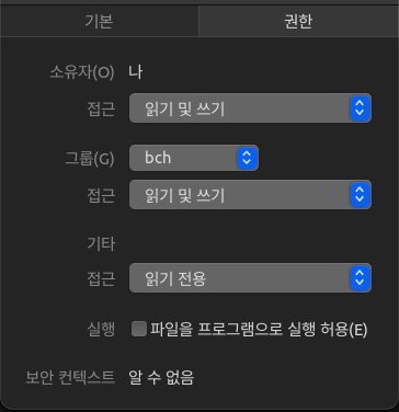 우클릭> 속성> 권한> 파일을 프로그램으로 실행허용을 체크해 주고, 다시 한번 파일을 더블클릭
