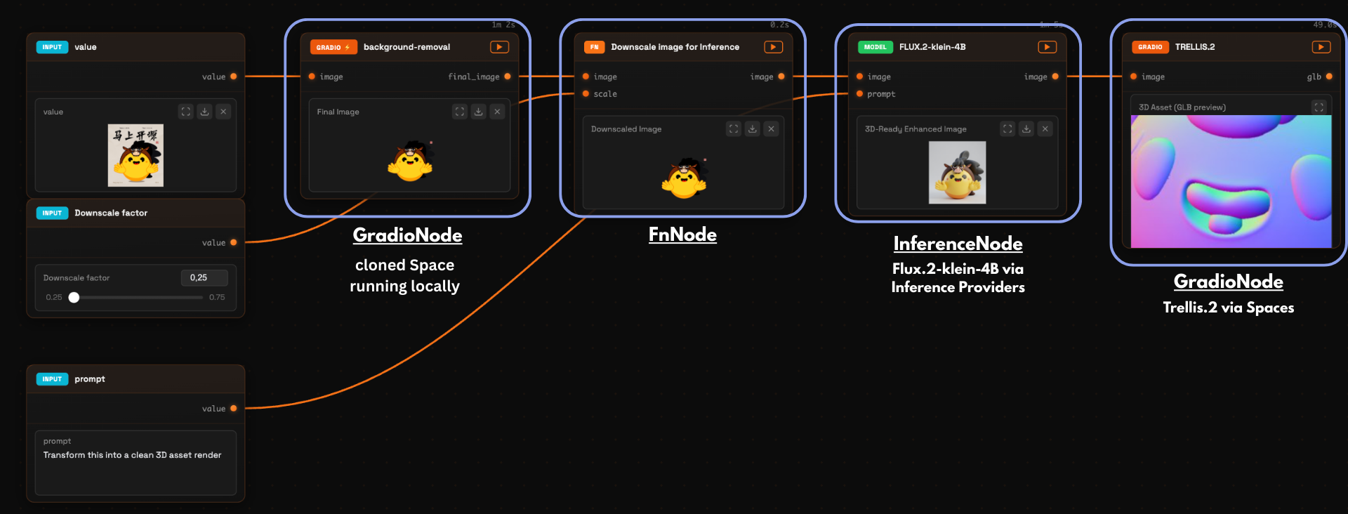심지어 "백업 노드"라는 게 있어서, 특정 모델이나 Space를 다른 걸로 교체해서 다시 실행할 수도 있다고 한다. A 모델로 했는데 결과가 별로면, B 모델로 바꿔서 해당 단계만 재실행하는 식이다.